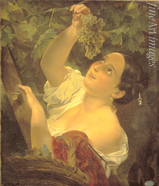 Sommer, Natur, Jahreszeiten, Poesie, Sonnenlicht, Sommerlandschaft, Weinberg, Weinlese, Tageszeiten, Garten, Am Lande, Romantik, Schönheit, Auf der Sonne, Italien, Junge Frau, Weintraube, Italienerin, Italienischer Mittag, Brjullow, Brüllow, Briullow, Briuloff