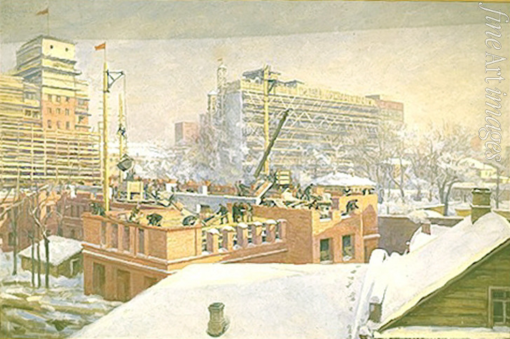 Moskau, Bau, Wohnung, Sowjetische Agitations- und Propagandakunst, Sowjetunion, Propaganda, Agitation, UdSSR, Sozialismus, Sozialistischer Realismus, Sozrealismus, Umzug