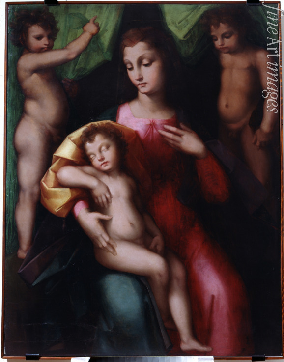 Idyll, Madonna, Kind, Bibel, Renaissance, Neues Testament, Maria, Gottesmutter, Jesuskind, Heilige Familie, Jungfrau, Christuskind, Putten, Engeln, Marienbild, Marienfigur, Madonnenbild, Marienbildnis