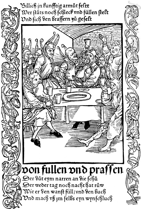 Satire, Narr, Buchillustration, Bajazzo, Spassmacher, Halskrause, Brant, Spaßmacher, Schwarz-Weiß-Bild, Schwarz-Weiß, Narrenschiff, Sebastian Brant, Schwarzweiss, Narrheit, Narrheit der Menschen, Spottvogel, Spötter, Schalk, Schelm, Witzbold, Joker, Hanswurst, Kasper, Kasperl, Kasperle