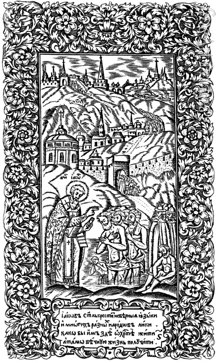 Taufe der Unglaeubigen durch Jakob. Illustration für das Buch Synodicon