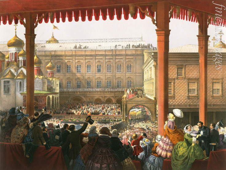 Titel:Der Kaiser Alexander II. grüßt das Volk von der Roten Treppe