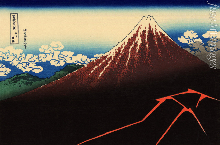 Gewitter unterhalb des Gipfels (aus der Bildserie 36 Ansichten des Berges Fuji)