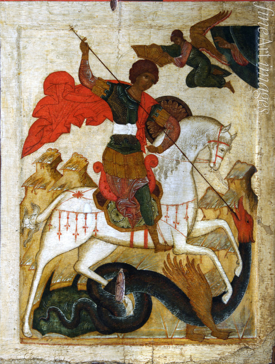 Ikone, Ikonenmalerei, Krieger, Märtyrer, Martyrium, Ritter, Heiliger, Heiligen, Gutes und Böses, Drachenwunder des heiligen Georg, Georg, Sankt Georg, Christliche Mythologie, Drache, Beschützer, Orthodoxe Kirche, Russische Kirche, Schutzheiliger, Schutzpatron, Heiliger Georg