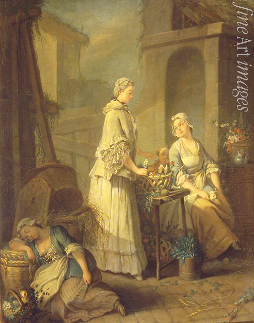 Armut, Blumen, Frankreich, Stadtbild, Dame, Mädchen, Melancholie, Frau, Blumenstrauß, Einsamkeit, Jugend, Haus, Rokoko, Strassenszene, Beruf, Blumenverkäuferin, Blumenladen, Blumenhandlung, Floristin, Bouquet