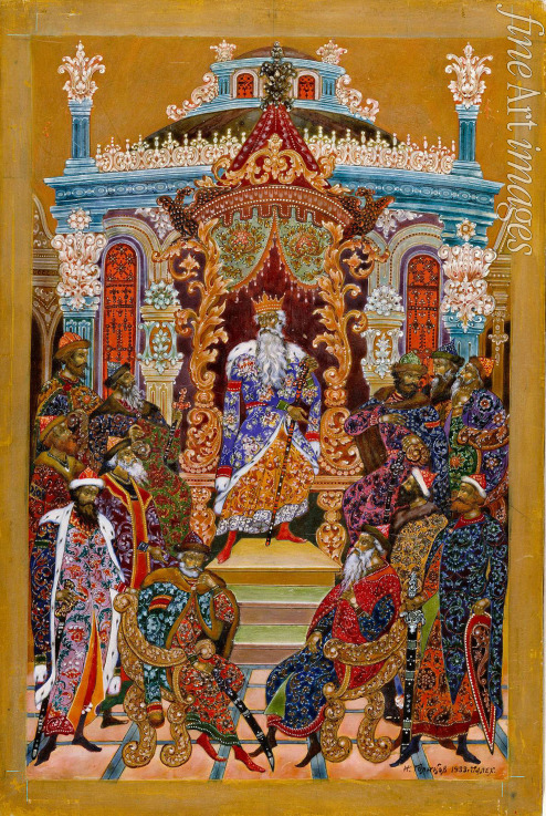 Titel:Fürst auf dem Thron. Illustration zum Epos Lied von dem Heer Igors