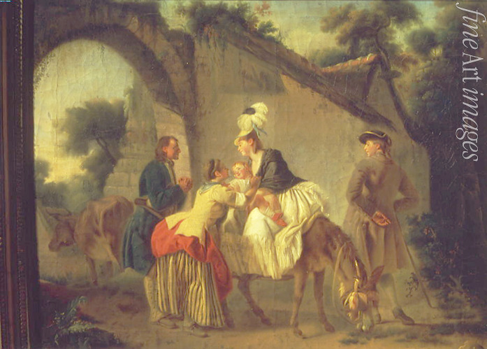 Frankreich, Poesie, Landhaus, Idyll, Glück, Zärtlichkeit, Mutterschaft, Mutterliebe, Mutter und Kind, Haus, Abschied, Familienleben, Kind, Familie, Rokoko, Mutter, Alltag, Familienszene, Genreszene, Amme, Abschied von der Amme