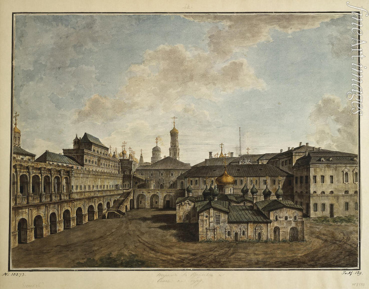 Ansicht des Terem-Palastes und der Erlöserkirche im Walde (Spas na Boru) im Moskauer Kreml