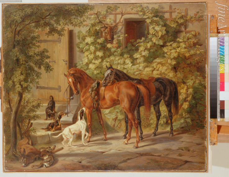 Sommer, Natur, Pferd, Wild, Stilleben, Hund, Jagdhund, Jagdbeute, Pferde, Geflügel, Pointer, Jagdtasche, Jagd:Tote Hase, Tierdarstellungen, Tierbild