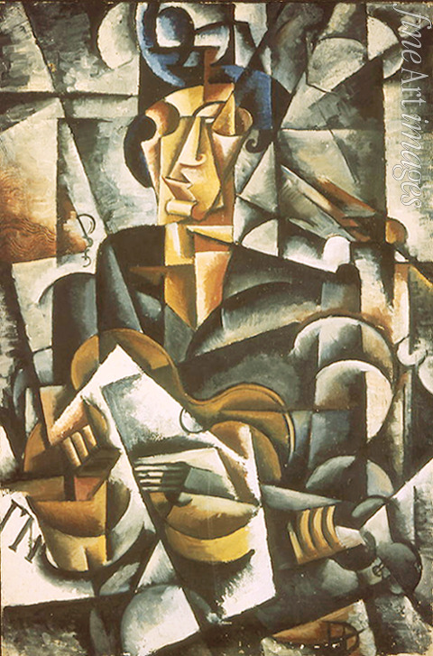 Dekorativ, Musik, Dame, Frau, Musikinstrumente, Kubismus, Frauenbildnis, Frauenporträt, Frauenkunst, Modern, Frau mit Gitarre, Gitarre, Russische Avantgarde, Gitarrist, Gitarristin, Musikinstrument, Kubofuturismus