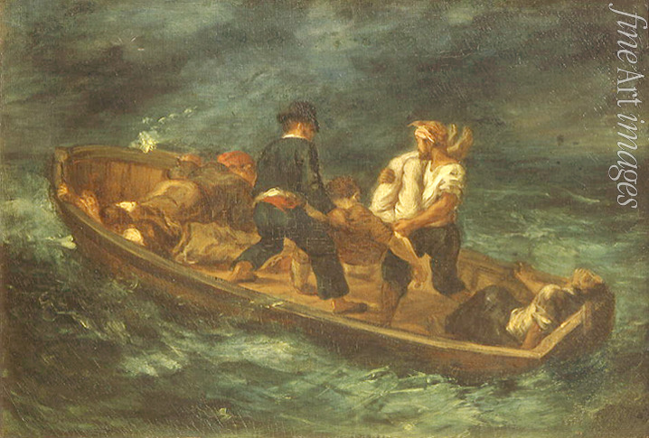 Meer, Wellen, Boot, Unwetter, Sturm, Nach dem Sturm, Schiffbruch, Schiffskatastrophe, See, Woge, Verzweiflung, Naturgewalt, Maritime Malerei, Rettung, Retten, Marinemalerei, Seemann, Überleben, Überlebende, Überlebenskampf, Nach dem Schiffbruch, Seeleute
