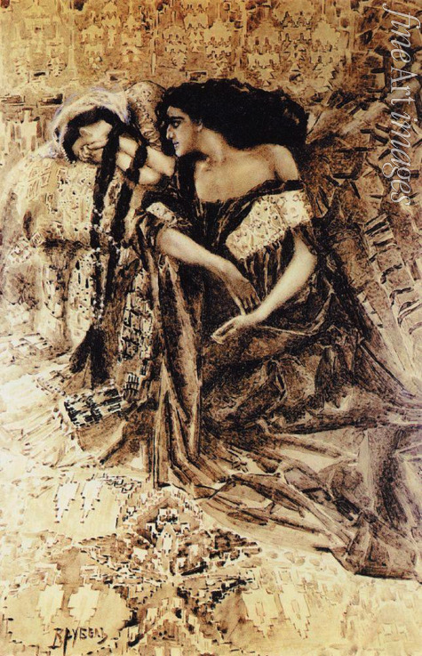 Tamara und Dämon. Illustration zum Gedicht Der Dämon von Michail Lermontow