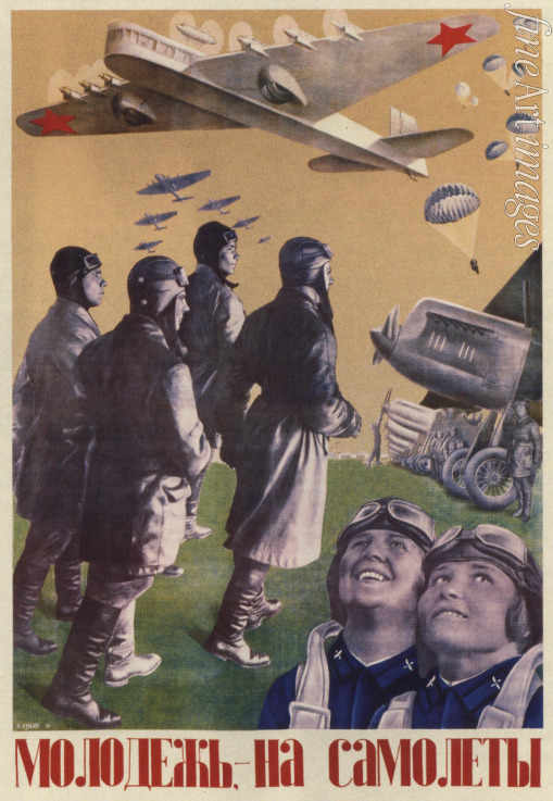 Russland, Flugzeug, Sowjetische Agitations- und Propagandakunst, Sowjetunion, Propaganda, Agitation, Flug, Luftfahrt, Luftfahrzeug, Luftraum, Luftwaffe, Sozialistischer Realismus, Sozrealismus, Luftflotte