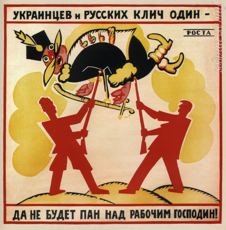 Symbol, Russland, Bauer, Bürgerkrieg, Proletariat, Revolution, Russische Revolution, Ukraine, Volk, Arbeiter, Krieg, Allegorie, Sowjetische Agitations- und Propagandakunst, Rote Armee, Russische Geschichte, Macht, Propaganda, Plakat, Agitation, Proletarier, Volksaufstand, Oktoberrevolution, Russischer Bürgerkrieg, Politisches Plakat, Polen, Sozialistischer Realismus, Weiße Armee, Rote Garde, Weiße Garde, 1917, Majakowski, Intervention, Polnisch-Sowjetischer Krieg, ROSTA, Rosta-Fenster, Agitprop