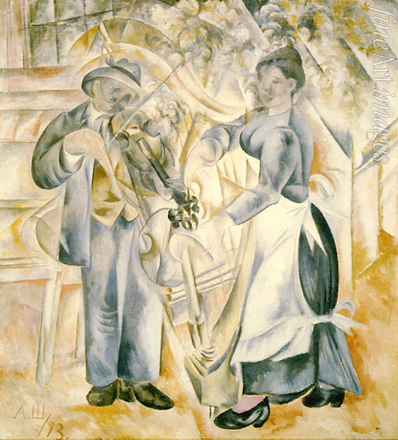 Musik, Facettierung, Wanderleben, Am Tisch, Café, Bar, Musikinstrumente, Violine, Kneipe, Musikanten, Russland, Kubismus, Restaurant, Interieur, Hauskonzert, Konzert, Musiker, Musikant, Musizieren, Geige, Wandermusikant, Russische Avantgarde, Expressiv, Lokal, Kellnerin, Geiger, Musikinstrument