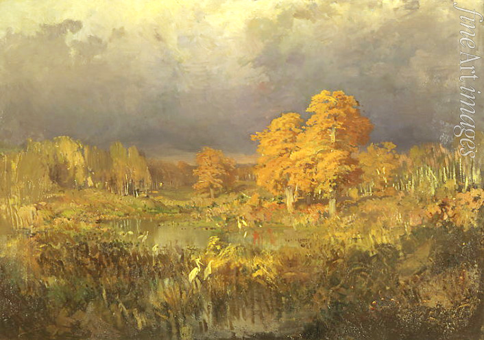 Jahreszeiten, Poesie, Hain, Bäume, Herbst, Wolken, Licht, Ufer, Wald, Teich, Russland, Herbstlandschaft, Waldlandschaft, Realismus, Gewitter, Lichtung, Waldrand, Ruhe, Schauer, Friede, Stille, Sumpf im Wald, Sumpf, Moor, Moorland