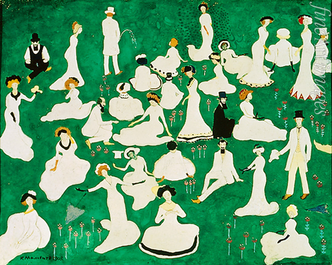 Gesellschaft, Damen, Park, Russland, Belustigung, Satire, Aquarell, Feier, Unterhaltung, Galant, Genreszene, Kavaliere, Erholung, Amüsant, Flirt, Galan, Spass, Gesellschaft mit Zylindern, Galante Gesellschaft, Kubofuturismus