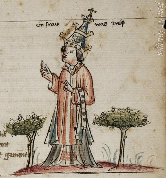 Deutschland, Handschrift, Mittelalter, Deutsche Geschichte, Buchmalerei, Manuskript, Bilderhandschrift, Päpstin Johanna, Päpstin, Miniatur