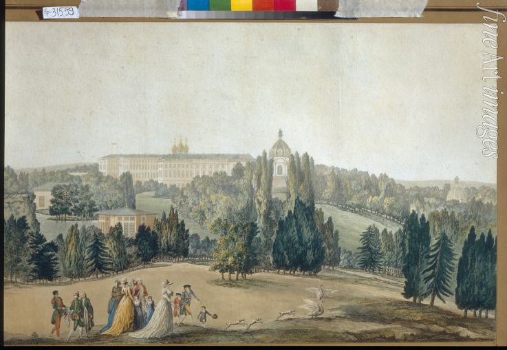 Ansicht von Zarskoje Selo. Spaziergang der Kaiserin Katharina II.