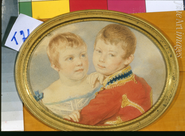 Porträt von Kronprinz Alexander Nikolajewitsch und Großfürstin Maria Nikolajewna als Kinder