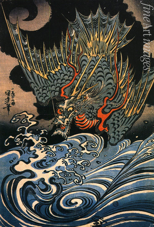 Holzschnitt, Drache, Japan, Edo-Zeit, Asien, Japanische Kunst, Fernosten, Ostasien, Ukiyo-e, Seedrache