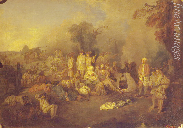 Frauen, Kinder, Soldaten, Rokoko, Krieger, Kriegsgreuel, Kriegsopfer, Lager, Krieg, Kriegsleiden, Leiden, Hunger, Not, Militär, Zelt, Koch, Biwak, Belagerung, Soldatenrast