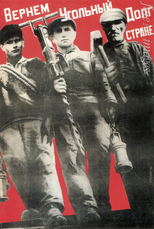 Symbol, Volk, Sowjetische Agitations- und Propagandakunst, Sowjetunion, Propaganda, Plakat, Agitation, UdSSR, Stalinismus, Politisches Plakat, Sozialismus, Sozialistischer Realismus, Sozrealismus, Diktatur, Stachanow, Fünfjahresplan, Stachanow-Bewegung, Stoßarbeit, Stoßarbeiter, Stoßarbeiterin, Helden der Sozialistischen Arbeit