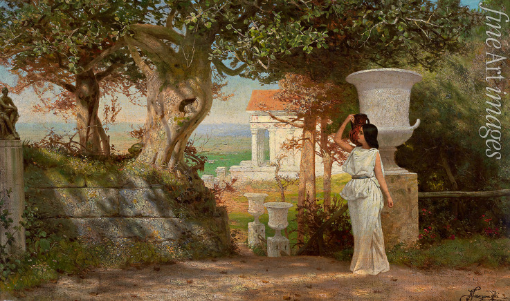Natur, Poesie, Mittag, Tageszeiten, Idyll, Romantische Landschaft, Blick, Italienische Landschaft, Antike Landschaft, Antike Villa, Wasserträgerin