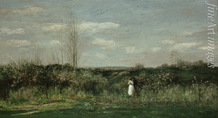 Frankreich, Natur, Jahreszeiten, Poesie, Am Lande, Frühling, Fußweg, Feld, Wiese, Blühen, Frühlingslandschaft, Barbizon, Realismus, Französische Malerei