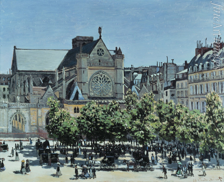 Paris, Frankreich, Jahreszeiten, Stadtbild, Großstadtszene, Straße, Bäume, Licht, Mittag, Tageszeiten, Lichtwirkung, Frühling, Impression, Häuser, Kutsche, Hauptstadt, Omnibus, Impressionismus, Impressionisten, Saint-Germain l'Auxerrois, Kirche Saint-Germain-l'Auxerrois