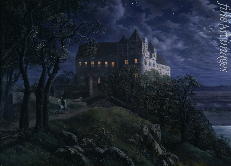 Jahreszeiten, Poesie, Tageszeiten, Berglandschaft, Nostalgie, Romantik, Idyll, Berg, Ansicht, Vergänglichkeit, Romantische Landschaft, Blick, Burg, Mond, Deutschland, Nacht, Mondlicht, Scharfenberg