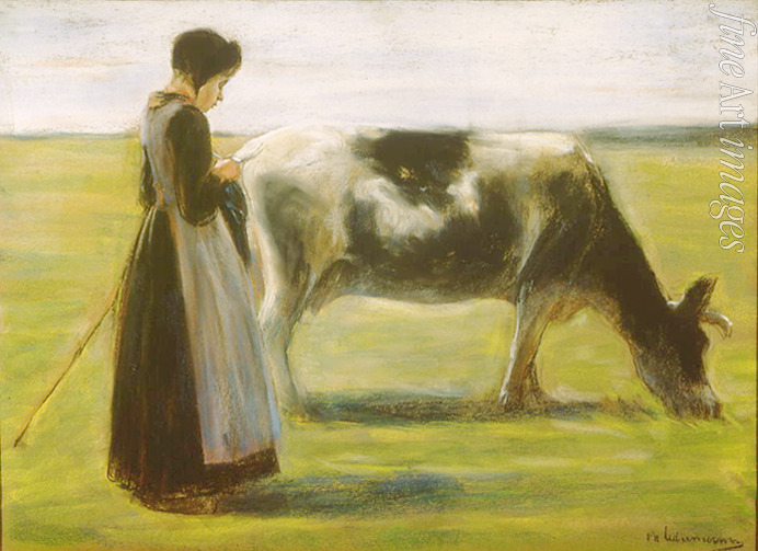 Armut, Sommer, Natur, Jahreszeiten, Poesie, Sonnenlicht, Sommerlandschaft, Licht, Mädchen, Am Lande, Feld, Wiese, Bauernleben, Jugend, Landfrau, Bäuerin, Haustiere, Vieh, Kuh, Kühe, Realismus, Holland, Hirtin, Bauernmädchen, Hirtenmädchen, Mädchen mit Kuh, Kuhhirtin