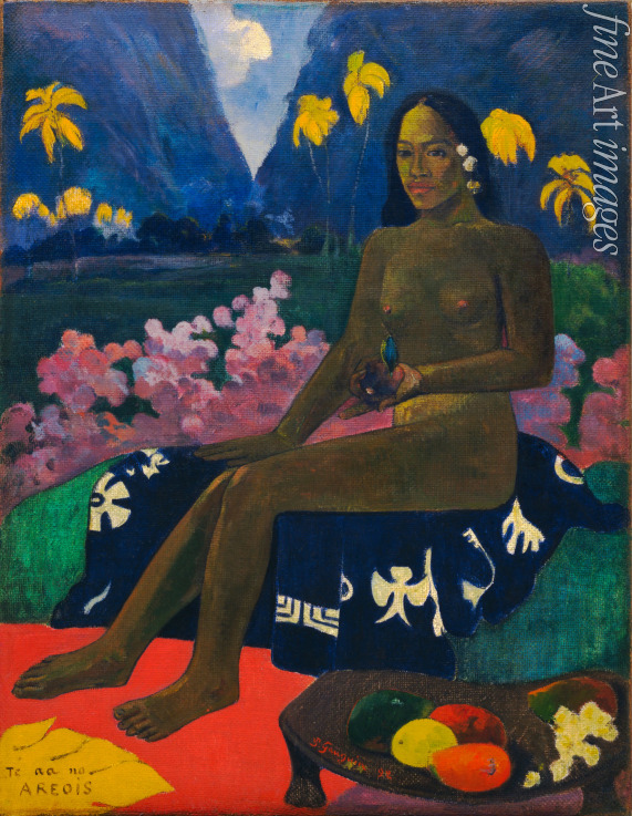 Blumen, Dekorativ, Lokalfarben, Tahiti, Abgott, Cloisonismus, Südsee, Polynesien, Sonnenlicht, Nackt, Nacktheit, Nacktes Mädchen, Paradies, Idyll, Tahitianerin, Liebe, Liebespaar, Schönheit, Raucherin, Avocado, Impressionismus, Impressionisten