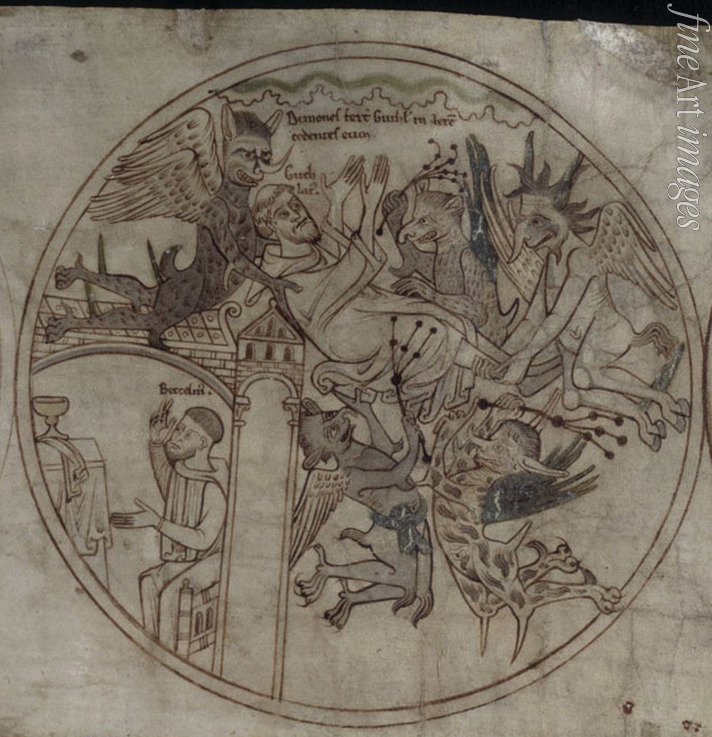 Guthlac, von Dämonen attackiert (Manuskript Das Leben des heiligen Guhlac)