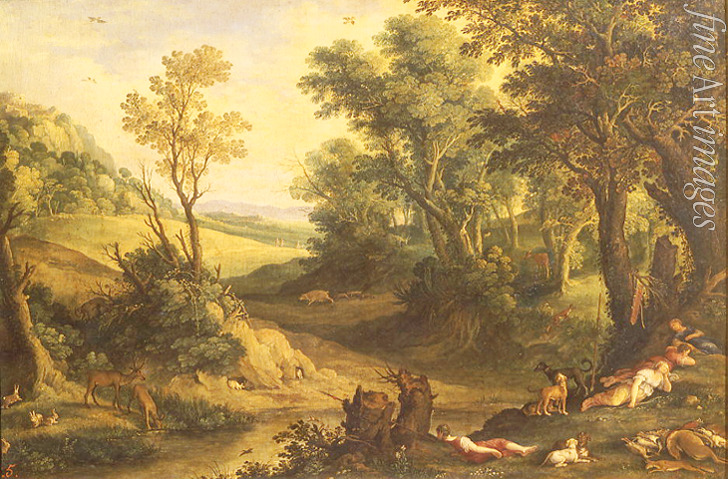 Sommer, Natur, Jahreszeiten, Poesie, Sommerlandschaft, Wald, Wild, Schlaf, Barock, Dianas Rast, Jagd, Diana, Göttin der Jagd, Mythologie, Jagdhund, Jagdbeute, Hirsch, Römische Mythologie, Artemis, Römische Antike, Gottheit