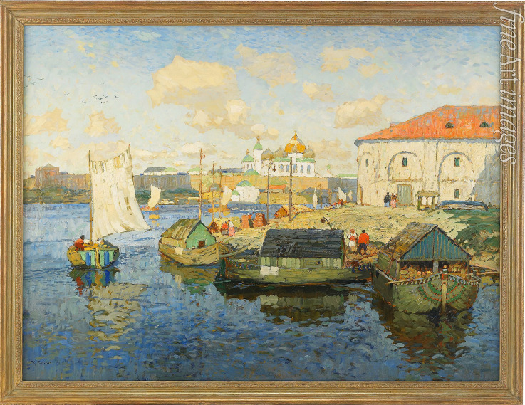 Stadtbild, Lichtwirkung, Segel, Segelboot, Wasser, Ufer, Russland, Kirche, Boot, Boote, Städtchen, Fischer, Ruhe, Friede, Provinz, Vorfreude, Wolga, Blick auf die Wolga, Fischerboot, Altrussische Architektur, Provinzstadt