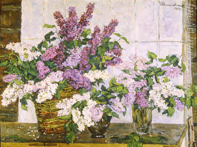 Blumen, Flieder, Russland, Auf dem Tisch, Stilleben, Blumenstrauss, Russische Avantgarde, Impressionismus, Fliederstrauß, Schellbube, Karo-Bube, Bouquet