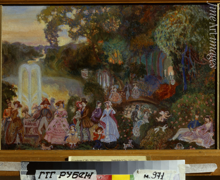Sommer, Musik, Tanz, Volksfest, Dame, Gesellschaft, Lustige Gesellschaft, Park, Russland, Belustigung, Feier, Fest, Heiterkeit, Lustigkeit, Unterhaltung, Abendgesellschaft, Kavalier, Folklore, Tradition, Kirchweih, Kerb, Brauchtum, Volksbelustigung, Soudeikine, Bauernfest, Soudeikin, Dorffest