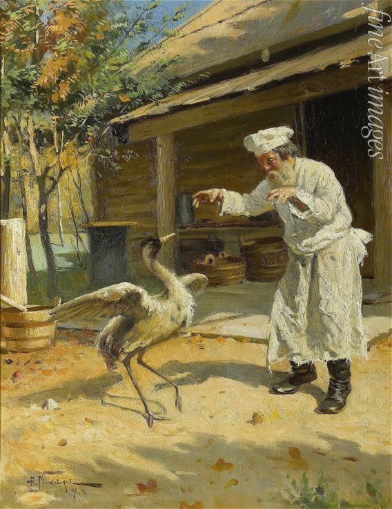 Poesie, Tanz, Belustigung, Küche, Kochen, Alltag, Familienszene, Genreszene, Koch, Heim, Spassmacher, Dresseur, Dressur, Gastronomie, Esskultur, Kranich, Kochkunst, Kulinarie
