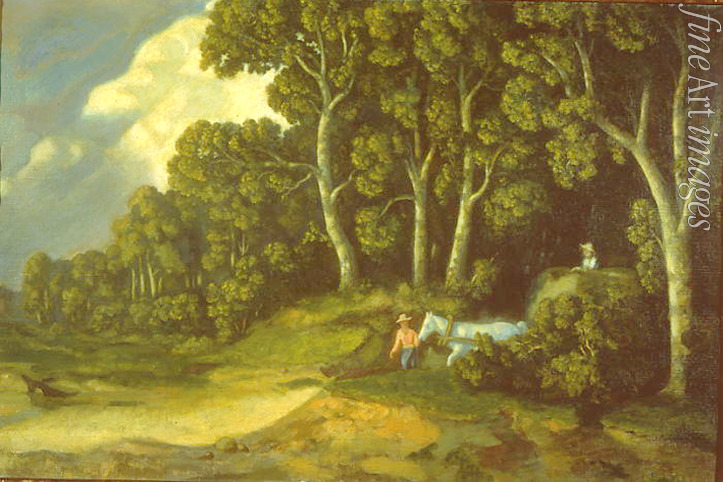 Sommer, Natur, Jahreszeiten, Poesie, Sommerlandschaft, Hain, Bäume, Wolken, Am Lande, Feld, Wiese, Bauern, Bauernleben, Schober, Heu, Russland, Bauer, Pferd, Reiter, Fuhrwerk, Waldrand, Erntezeit, Ruhe, Friede, Stille, Heufuhre, Heuernte, Heuschober, Im Wald, Heuwagen