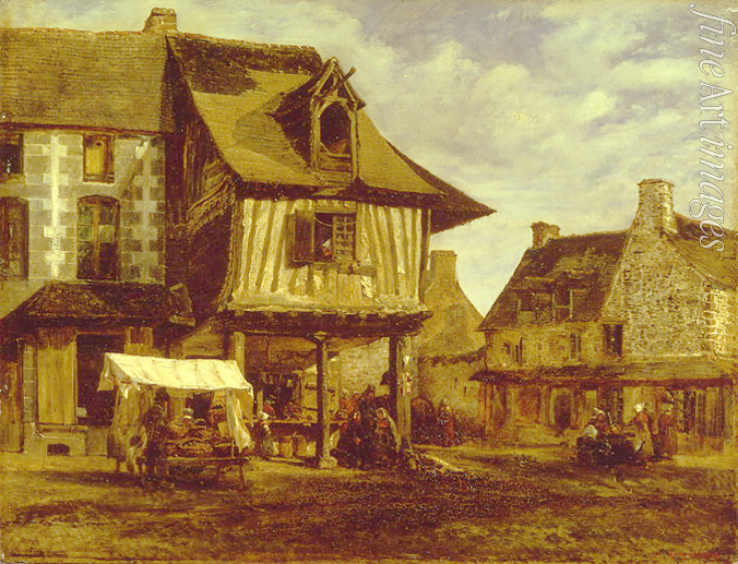 Frankreich, Stadtbild, Häuser, Haus, Normandie, Bauernmarkt, Städtchen, Barbizon, Realismus, Alltag, Markt, Provinz, Strasse, Marktplatz, Bude, Marktbude, Französische Malerei, Markt in der Normandie