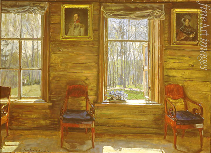 Fenster, Sonne, Jahreszeiten, Poesie, Sonnenlicht, Bäume, Licht, Lichtwirkung, Garten, Am Lande, Frühling, Landhaus, Im Zimmer, Impression, Park, Russland, Haus, Frühlingslandschaft, Interieur, Ruhe, Heim, Wohnen, Wohnzimmer, Sessel, Landgut, Villa, Am Fenster, Herrenhaus, Fröhliche Mai, Anwesen, Gutshaus