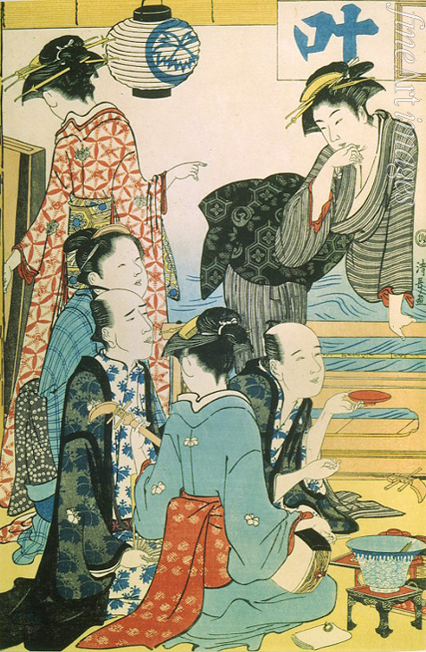 Holzschnitt, Japan, Edo-Zeit, Asien, Japanische Kunst, Fernosten, Ostasien, Kurtisanen, Ukiyo-e, Geishas, Teehäusern