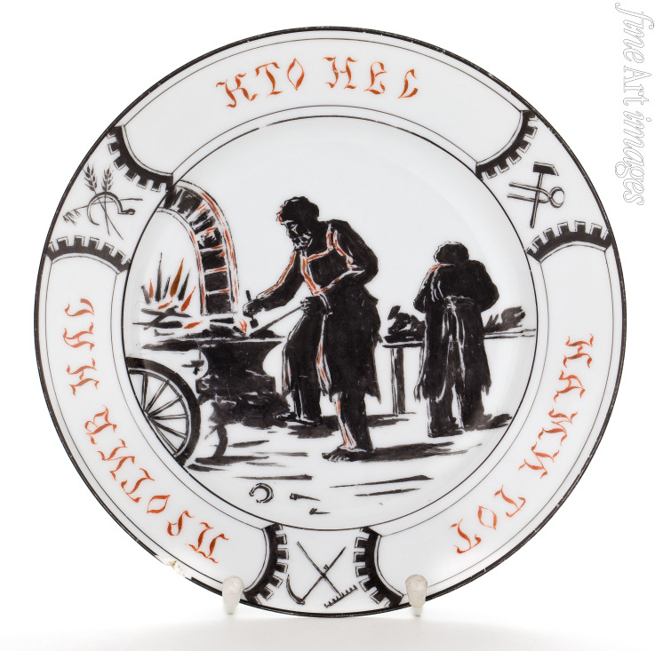 Dekorativ, Gegenstandslos, Linie, Zeichen, Symbol, Russland, Teller, Porzellan, Abstrakt, Revolution, Russische Revolution, Fläche, Sowjetische Agitations- und Propagandakunst, Russische Avantgarde, Schrift, Teller Russische Föderation