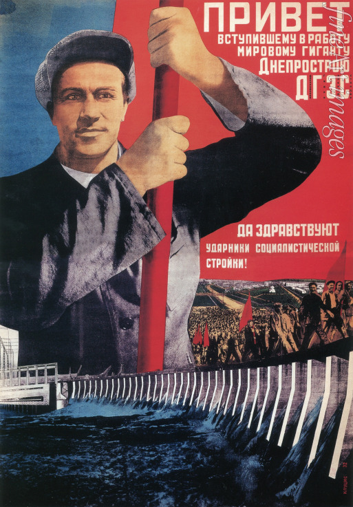 Russland, Proletariat, Ukraine, Bau, Bauarbeiten, Arbeiter, Sowjetische Agitations- und Propagandakunst, Sowjetunion, Propaganda, Agitation, Dnjepr, Proletarier, Wirtschaft, Industrialisierung, Aufbau der UdSSR, UdSSR, Elektrifizierung, Dnepr, Sozialistischer Realismus, Sozrealismus, Dnjeprostroj, Dnieprostoi, "DneproGES", Wasserkraftwerk, Kraftwerk, Stausee, Talsperre, Talsperren, Dnepr-Wasserkraftwerk, Dneproges, Dnjepr-Talsperre, Fünfjahresplan, Stoßarbeit, Stoßarbeiter, Stoßarbeiterin, Helden der Sozialistischen Arbeit, GOELRO-Plan, GOELRO, Dnepr-Stausee, Dnjepr-Stausee