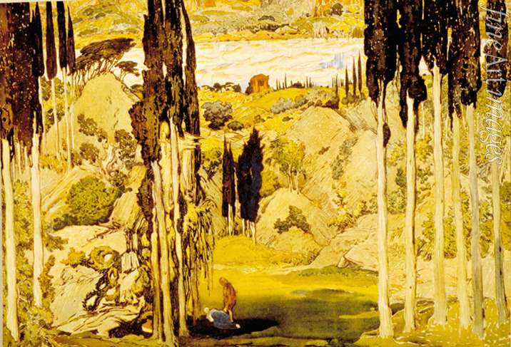 Ballett, Theater, Oper, Bühnenbild, Bühnenmalerei, Ballets Russes, Ravel, Fokin, Djagilew, Choreograf, Ballett, Russe, Sergei Djagilew, Michail Fokin, Fokine, Szenenbild, Szenografie, Theatermalerei, Serge Diaghilev, Diaghilev, Daphnis et Chloé, Daphnis und Chloé, Daphnis, Chloe
