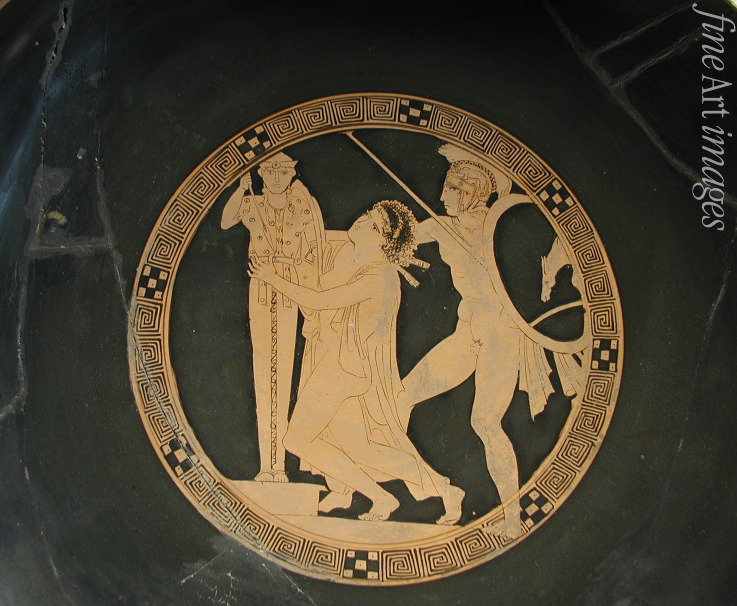 Vase, Griechische Mythologie, Odyssee, Homer, Held, Sage, Griechische Antike, Ilias, Heldenepik, Trojanischer Krieg, Troja, Priamos, Gefäß, Kelchkrater, Kassandra, Ajax der Kleine, Kleiner Ajax, Aias der Lokrer, Aias, Lokrer, Xoanon, Palladium, Attika