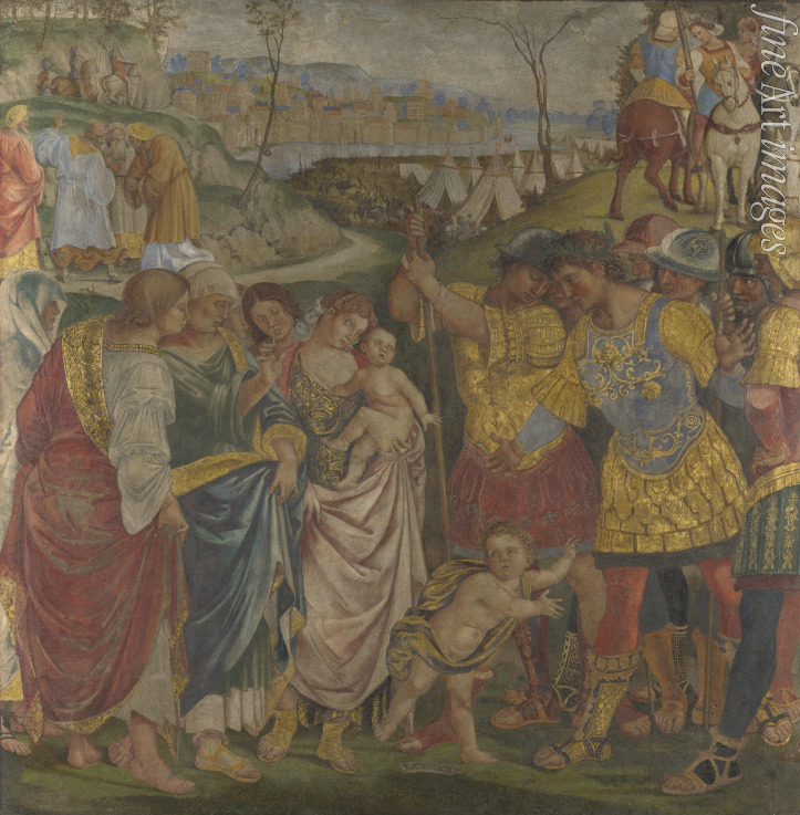 Coriolanus' Frau und seine Mutter bitten ihn, Rom zu verschonen (Fresko im Palazzo del Magnifico, Siena)