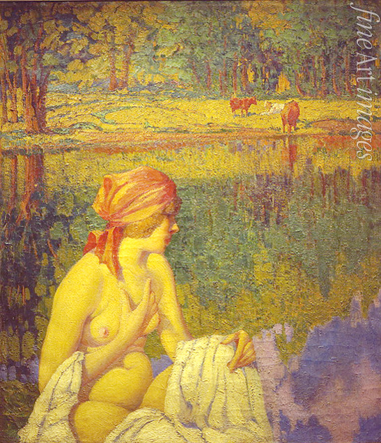 Gusikow Semjon Matwejewitsch - Badende Frau mit der ländlichen Landschaft im Hintergrund