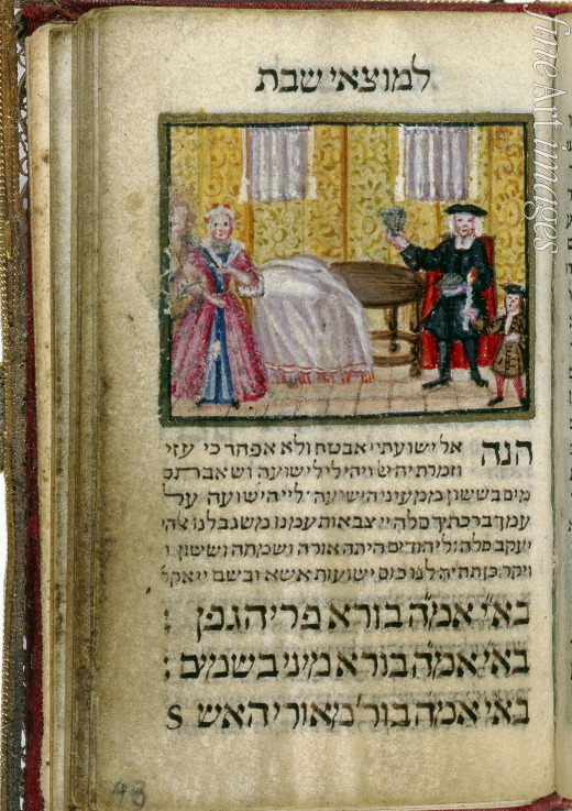 Judentum, Samstag, Torah, Israelisches Volk, Thora, Handschrift, Tanach, Buchmalerei, Manuskript, Bilderhandschrift, Seder, Sederabend, Sedertisch, Sederfeier, Pessach, Passah, Haggada, Sabbat, Schabbat, Siddur, Seder Tikkunei Shabbat, Tora, Miniatur, Jüdische Geschichte